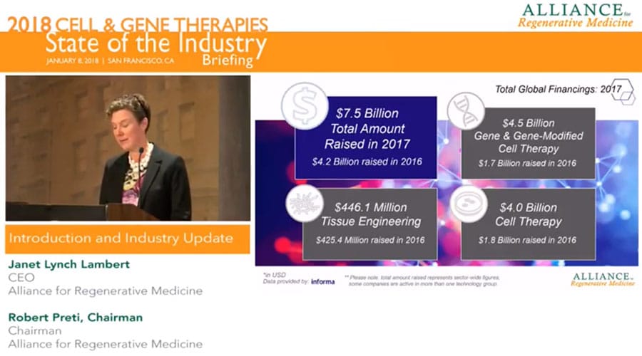 AGT VideoOverview Bob Preti and Janet Lynch Lambert, chairman and CEO of the Alliance for Regenerative Medicine (ARM), presented the “State of the Industry” briefing at the 2018 JP Morgan Healthcare Conference, the premier investment...